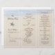 Herz in Sand Hochzeitsprogramm Vorlage. Falten Sie in dritt zu einem einzigartigen und schönen Strand Thema Hochzeit Programm. Einfache Anpassung mit den bereitgestellten Textzeilen der Vorlage. Zwei Seesterne dekorierten die erste dritte, die vier Vorlagen mit braunem Text hat. Ozeanwasser kann man an der Decke sehen, die sich am Strand erhebt, wobei ein großes Herz im Sand des Strandes gezeichnet wird. Dieses Bild wird NUR AUF EINER SEITE gedruckt. Das Gegenteil wird schlicht sein.