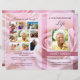 Hübsches Beerdigungsprogramm mit einem rosa Rosenstopp-Foto. Bietet Platz für einen Nachmittagstee, Dienstorden, Gedichte und mehr, um ein schönes Programm für Ihren Liebsten zu schaffen. Alle Texte sind einfach zu bearbeiten und vollständig anpassbar. Dieses Beerdigungsprogramm druckt zweiseitig auf einem Single Papier der Letter Size (8,5 x 11 Zoll). Wenn gefaltet, wird ein Booklet mit 4 x halben Letter-Seiten (8,5 x 5,5 Zoll pro Seite) erstellt.