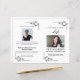 Klassisches Schwarz-Weiß Beerdigungsprogramm mit wunderschön verzierten Eckdetails. Diese Vorlage enthält Platz für ein großes Foto auf der Vorder- und Rückseite, ein Foto über dem Text auf der Innenseite und eine Dienstreihenfolge. Alle Foto- und Textbilder können so angepasst werden, ob Sie dieses Layout verwenden oder es nach Ihren Wünschen anpassen möchten, es ist einfach, ein schönes Programm für Ihren Liebsten zu erstellen. Dieses Beerdigungsprogramm druckt zweiseitig auf einem Single Papier der Letter Size (8,5 x 11 Zoll). Wenn gefaltet, wird ein Booklet mit 4 x halben Letter-Seiten (8,5 x 5,5 Zoll pro Seite) erstellt.