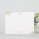 Leere, leafy Scrollarbeit Papier, um Ihr eigenes Hochzeitsprogramm oder andere Dinge zu drucken. Schlichtes Weißpapier mit goldfarbenen Blattgemälden in den Ecken. Die Rückseite ist massiv dunkelgoldbraun.