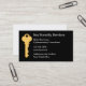 Cybersecurity Services Visitenkartenvorlage mit einer goldenen Tonsperrtaste-Grafik und einfaches Layout, das online angepasst werden kann. Entwickelt für einen Computer- oder Business-Sicherheitsdienst, der Unternehmen dabei unterstützt, ihre Computer und Netzwerke sicher behalten und Fehler zu beheben. Auf hochwertigem Kartenbestand gedruckt.