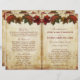 Das "Herbstlaubs Wedding Bi- Fold Program Template" ist Teil der "Herbstlaubs Wedding Collection", die für jedes Ehepaar geeignet ist, das eine rustikale Herbsthochzeit plant. Diese Programmvorlage kann leicht personalisiert werden, indem Sie den Abschnitt "Diese Vorlage bearbeiten" mit Ihrem benutzerdefinierten Text ergänzen. Sie können auch auf den blauen Knopf "Anpassen!" klicken, der erweiterte Anpassungselemente ermöglicht, z. B. das Ändern der Schriftart-Stile, die Farbgebung der Schriftart und das Verschieben der Formulierung nach Ihren Feierlichkeiten.