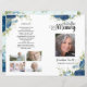 Schöne und berufliche Begräbnisvorlage mit blauem Blumengebirge, leicht zu bearbeiten und zu drucken.