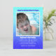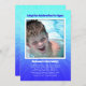 Älterer Junge, Adoption Party Einladung mit Fotovorlage. Helles Aqua-Design und lila-blaue Sternexplosion mit Text an drei Stellen anpassen. Fügen Sie einem gerahmten Vorlagenbereich ein großes Foto mit Party-Informationen hinzu. Kann auch als Sommergeburtstag-Party / Pool-Party Einladung verwendet werden.