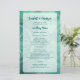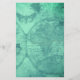 Budget Hochzeitsmenü Vorlage kostenlos mit Not leidendem grünes Papier. Dieses Layout hat einen Hintergrund aus Spritzer und Motte in aquamarinem Grün. Dunkelgrüner Text wird auf einem durchsichtigen weißen Feld mit Orten für Vornamen des Paares, Datum, Position, Menütitel und Liste der Menüpunkte gedruckt. Das Papier ist sehr erschwinglich, mit Rabatten für Großaufträge.