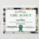 Gerahmt in einer wunderschönen, Foto-Grenze von Molkereien, dieses Zertifikat ist für das Ausfüllen "x" Anzahl von Jahren in Pfadfindern für jüngere Mädchen. Und es ist eine anpassbare Vorlage. Sie füllen nur die Bereiche und fertig. Auf der Rückseite haben Sie die Möglichkeit, auch ein Memento-Foto hochzuladen!