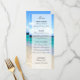 2 Seiten Hochzeitmenü Vorlage für Beach Wedding. Auf der ersten Seite finden Sie Vorspeisen, Salat, Hauptgericht und Dessert gegen einen dramatischen blauen Ozean mit Sandstrand. Weiße Puffwolken im Hintergrund mit schönem Schatten des blauen Himmels. Die Rückseite hat das gleiche schöne Foto eines perfekten Strandes. Kann beliebig angepasst werden mit den Feldern, der Auswahl des Schriftartes und der Farbe des Schriftartes. Ideal für die Braut und Bräutigam Strand Hochzeit in Urlaubsort Empfang oder andere besondere Veranstaltung.