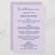 Lavender lila Hochzeitsmenü Vorlage. Hibiskus Blume Konturen bilden ein Lichtmuster über dem Hintergrund. Text ist dunkelmarinblau mit Namen des Paares oben mit Datum und Menütitel. Fügen Sie alle Menüpunkte in einem Absatz, wie Sie wählen. Die Beispielformulierung hat mit Großbuchstaben und Leerzeichen zwischen Abschnitten begonnen. Die Rückseite des Papiers ist dunkler lila mit dem gleichen Blumenmuster.