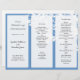 Falten Sie dieses hellblaue Zeremoniell-Programm mit Baumzweigen in Dritteln. Das Papier ist 8,5 x 11 Zoll groß und wird in drei Bereiche mit himmelblauem Hintergrund und weißen Zweigen unterteilt. Text ist informeller Schriftart-Stil in Holzkohle grau auf drei weißen Tafeln. Es öffnet sich wie ein Akkordeon mit allen Drucken - Bilder und Text - auf EINER SEITE NUR. Wählen Sie eine beliebige Papiersorte aus, die Leinen werden angezeigt. .............