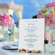 Tafelschild für Hochzeiten. Eine hübsche Muschelgrenze am Ende der stehenden Plakette für die Empfang-Tische. Stellen Sie anstelle eines Menüs für jede Platzierung einfach ein Menüzeichen in jede Tabelle. Fügen Sie oben die Namen des Paares mit dem Titel "Menü" hinzu. Liste der Vorspeisen, Vorspeisen, Vorspeisen, Nachspeisen, in Absatz Form. Verwenden oder löschen Sie Leerzeichen, um Text passend anzupassen. Wählen Sie eine bevorzugte Zeichengröße. Entspricht der Hochzeitskollektion "Living Seas".