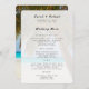 Große Palmen Hochzeitsmenu Vorlage mit Spezialpapier Upgrade Optionen. Dieses Menü wird auf Kartenmaterial gedruckt und enthält weiße Umschläge. Der Palmenbaum an der tropischen Küste ist das Hintergrundbild auf der Vorderseite und in voller Farbe auf der Rückseite. Füllen Sie einfach die Vorlagen aus, um die Empfang-Menükurse abzuschließen.
