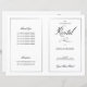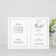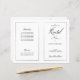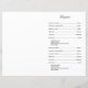 Dieses Programm ist eine 8.5 x 11-Seite, die Sie zum Zusammenbauen zusammenfalten müssen. Der Zeilenrand verblasst an der Ecke, und dies ist beabsichtigt, um den Skriptstil anzupassen. Klassisches, dezentes Schwarz-Weiß-Programm mit moderner Touch mit dem eleganten Schriftsatz des Wortes "Erwägungsgrund" auf der äußeren "Abdeckung".