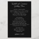 Erschwingliches Hochzeitsmenü in neutralem Schwarz und Weiß. Schwarzes Papier mit Vorlagen mit weißem Text hat die Namen des Ehepaares mit dem Menütitel oben. Alle Menüpunkte werden in einem Single-Absatz hinzugefügt. Fügen Sie Leerzeichen wie Sie es vorziehen, um Text auszugleichen. Das Datum des Ereignisses ist am Ende der Zeitung.