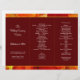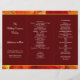 Benutzerdefiniert, Programmvorlage Hochzeit im Herbst. Dunkelbordeauxfarbene mittlere Leiste auf einem Hintergrund aus orangen und gelben Herbstlauben. Weißer Text lässt sich auf einem dreiseitigen gefalteten Papier ganz einfach nach Bereichen anpassen. Bilder und Text werden NUR AUF EINER SEITE gedruckt. Das gefühlte Papier wird angezeigt und kann gewechselt werden. ............