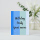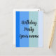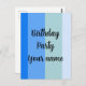 Cooles blaues Streifen Muster mit Text: Geburtstagsparty und Namensvorlage. Fit an einen maritimen Stil.