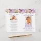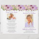 Hübsche Lavendel lila Blumenbeerdigung Programmvorlage zeigt Fotos auf der Vorder- und Rückseite zusammen mit einer Dienstordnung, ein Gedicht, liebevolle Familiennamen und danke der Familie. Diese Programme drucken vorne und hinten auf Briefpapier, das Sie in der Mitte falten müssen. Ein hübsches Blumendesign für ein Gedenkprogramm zur Feier des Lebens.