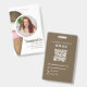Mit diesem beruflichen Business Corporate Standard Small Business Abzeichen mit einer modernen Fotovorlage für ein schlankes und glänzendes Aussehen machen Sie sich einen bleibenden Eindruck. Dieses Abzeichen wurde für die Namensschilder für Firmenangestellte entwickelt und enthält einen lässigen QR-Code für Social Media-Verbindungen. Ideal für eine moderne Veranstaltung, ein Fest oder eine Messe. Ideal für einen Eiskonus, einen Salon, einen Catering LKW, einen Caterer oder ein Restaurant. Dieses niedliche Abzeichen zur Identifikation von Arbeitskräften verbindet Stil und Funktionalität mit einer eleganten, schicken Typografie-Vorlage.