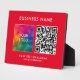 Laden Sie hier den QR-Code Ihres Unternehmens hoch und fügen Sie Text-Slogan Elegant Modernes, individuelles Template Horizontal Red Tabletop Plaque mit Easel hinzu.