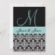 Diese Schwarz-Weiß- und Aqua-Blau-Einladung mit ihren Brokat-Damast-Mustern macht eine elegante Hochzeitseinladung. Fügen Sie Ihre Namen und Monogramm auf der Vorderseite und Ihre Hochzeitseinladung auf der Rückseite.