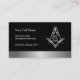 Hier ist eine schwarz-silberne, männliche Visitenkartenvorlage, die personalisiert werden kann. Diese hochwertigen zweiseitigen Freemason Business Cards sind für ein elegantes modernes Ambiente konzipiert und stellen ein silbernes Quadrat und ein Kompasssymbol auf der Vorderseite dar. Die Rückseite hat einen benutzerdefinierten Textbereich, der einen Satz zeigt, der in Mauerwerk gefunden wurde: "To Be One Frag One." Farben: metallisches Silber, Schwarz und Weiß. Kategorie: Vorlagen mit Freimaurerkarte.