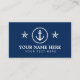 Vorlage für die Visitenkarte für professionelle Netzwerkanker. Elegante blau-weiße Firmenkarte für Bootsführer, Skipper, Segler, Segelgesellschaft, Schiffsreparatur, Herstellung, Bootsausflüge, Charter, Yacht Verleih, Yachthafen, Segellehrer, Lehrer, Hafen, Restaurant, Geschäft, Geschäft, Büro, etc. Stilvolles Layout mit Seil- und Sternensymbol und Schriftzypografie. Machen Sie Ihre eigenen Visitenkarten für Marketing und Promotionen. Anpassbarer Text für individuelle Adresse, Telefon, E-Mail und Website. Auch gut für andere Berufe im Zusammenhang mit See, Meer, Ozean, Strand, Tourismus, Reisen etc. Starten Sie noch heute Ihr Geschäft!