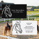 Vorlage für die Visitenkarte der Pferdeeisengesellschaft. Benutzerdefiniertes Visitenkarten-Design mit Logo für landwirtschaftliche Tiere. Elegante Ikone mit moderner Typografie für Namen und Slogan. Schwarz-Weiß oder benutzerdefinierter Farbhintergrund. Berufliche Visitenkarten für Berufe, die im Bereich der Pferde und im Beruf tätig sind. Auch ideal für Pferdeausflüge, Cowboyranken, Pferdeställe, Reitlehrer, Kurse und vieles mehr. Erhältlich in verschiedenen Größen, Papierdicke und abgerundete Ecke. Wechseln Sie die Menge, um den billigen Schüttgutpreis zu erhalten. Schwarz-Weiß-Hengst zeichnend.