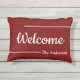 Willkommen ist in einem großen, weißen Drehbuch in der Mitte des Kissens. Dieses dunkelrote Kissen hat auch eine andere Textzeile am unteren Rand. Sie können entweder einen oder beide Zeilen Anzeigetext bearbeiten, um eine benutzerdefinierte Nachricht zu erstellen.