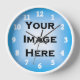 Diese benutzerdefinierte Uhr-Vorlage ist ein einfaches, vielseitiges und klassisches Zeitmesser-Design mit großen weißen Zahlen, die die Stunde angeben. Um dieses Produkt anzupassen, laden Sie Ihr eigenes Hintergrundbild oder Foto wie oben angegeben hoch.