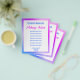 Sie können den Anzeigetext bearbeiten, um Ihren Namen und die angebotenen Dienste anzuzeigen. Es gibt auch Text am unteren Rand für Ihre Kontaktinformationen. Alle Texte können bearbeitet oder gelöscht werden. Der Flyer hat einen lila und blauen Farbverlauf.