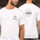 Erstellen Sie mit unserer einfach zu bedienenden, sauberen und modernen Logo-Upload-Vorlage Ihr eigenes, individuelles Business-Kleidungsstück. Klicken Sie einfach auf "Personalisieren", um Ihr Firmenlogo oder Ihr Wappen, Ihren Mitarbeiternamen oder Ihren Jobtitel (falls erforderlich) hochzuladen, und Sie haben einen vorgefertigten Corporate-Branding-T - Shirt. Dieses Shirt hat ein kleines Logo und einen Namen auf der Vorderseite und ein größeres Logo auf der Rückseite. Egal ob Sie eine minimalistische Mitarbeiteruniform suchen, Werbespots für Ihre nächste Messe- oder Marketing-Veranstaltung planen oder einfach eine Gehwerbung für Ihre Marke gewollt haben, es ist schnell, so wenig oder so viele zu machen, wie Sie brauchen.