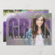 Abschluss Foto Einladung mit einem modernen Design für die Klasse der [Graduate Name]. Mit fett cooler Typografie in einem einfachen, minimalistischen Stil. Enthält einen QR-Code für die Graduierungsparty, der für die Highschool oder die Uni geeignet ist. Verwendet minimale Fettschrift.