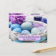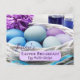 Osterfrühstück oder Brunch-Postkarte mit einem Bild von bemalten Eiern in festlichen lila und blauen Farben. Ideal, um für Ihr eigenes Lieblingsrezept zu verwenden oder mit jemandem zu teilen, den Sie Liebe!