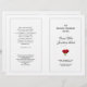 Rote Rosen auf Schwarz/Weiß, gefaltetes Hochzeitsprogramm. Einfaches Design mit vier Seiten, um sich mit viel Text, für eine lange katholische Zeremonie erstellt. Christliche Schrift oder ein beliebter Vers können zusammen mit einer Dankeschön-Nachricht auf der Rückseite hinzugefügt werden.