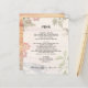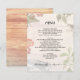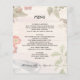Ein Hochzeitsmenü mit Bildern aus der Natur. Boho / bohemian Hochzeit Thema ist das Design für dieses maßgeschneiderte Menü. Blätter, Blume, Federn, Beeren und ein Vogel bilden den Rahmen über einem hellen Holzbrett. Großbuchstaben, gedruckte Texte lassen sich leicht mit Vorspeisen, Hauptgerichten oder Buffets und Desserts personalisieren. Legen Sie die Namen des frisch verheirateten Paares und das Hochzeitstermin unten. Reverse hat ein Bild aus Holzplatten.