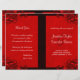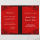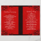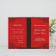 © Sunny Mars Designs - Blütenblüter Hibiskus: Dark Red on Red Bi-Fold Wedding Programs - Moderne, trendige, stilvolle, individuell gestaltbare, beidseitig bedruckte Hochzeitsvorlage mit dunkelrot, rot, bordeauxrot, rubinrot oder maronen Wirblen tropischen Hibiskus Blumendesign vor einem hellroten Hintergrund. Falten Sie dieses Programm in zwei Hälften, um es zu einem eleganten Büchlein zu machen. Personalisieren Sie es, indem Sie Ihre Hochzeitsfeier und Ihre Hochzeitsfeier Details hinzufügen.
