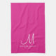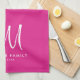 Benutzerdefiniertes Hochladen Fügen Sie Ihren Foto-Design oder Logo Text Elegant Moderne Niedliche Monogramm Anfangsname / Familienname Vorlage Trendy Pink Küchentuch.