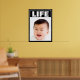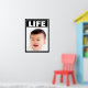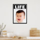 Das ist ein schönes Pro-Life-Bild eines lächelnden Babys mit dunklem Haar. Das Wort LIFE steht oben. Ein schwarz-weißer Rahmen umgibt das Bild. Alle Texte und Schriftart können geändert werden.