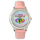 Kinderuhr aus Edelstahl mit rosa Lederarmband