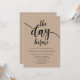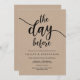 Mit unserem modernen braunen Kraftthemendesign (The Day Before) für Hochzeit und Probe präsentieren wir Ihnen Ihr Glück im Stil. Ideal für Paare, die sich entschieden haben, den Tag vor ihrem großen Tag zu feiern. Mit seinem ausgeklügelten und spielerischen Design wird diese Einladung den Ton für ein unvergessliches Ereignis Set. Die Einladungskarte bietet modernes romantisches Drehbuchdesign und verleiht Ihrem Fest eine Touch zeitloser Eleganz. Designed by TeeshaDerrick