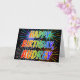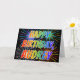 Dieses lustige, lebendige, mehrfarbige Geburtstagskarten-Design zeigt die Nachricht "HAPPY BIRTHDAY" und den gemeinsamen Vornamen "AUDREY" mit den Buchstaben, die ein farbenfrohes Regenbogenspektrum wie Farbverlauf haben. Der Hintergrund der Vorderseite zeigt auch ein farbenfrohes Muster, das durch das Aussehen eines berstenden feierlichen Feuerwerks inspiriert wird. Im Inneren befindet sich eine personalisierte Begrüßungsnachricht, oder man könnte sie löschen und leer verlassen werden, wenn eine Nachricht von Hand geschrieben werden soll. Eine Geburtstagskarte wie diese könnte Spaß machen, jemandem namens Audrey zum Geburtstag zu schenken. [~Z0000350]