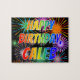 Dieses lustige, lebendige, zum Geburtstag bestimmte Puzzle-Design hat die Botschaft "HAPPY BIRTHDAY, CALEB" mit einem farbenfrohen Regenbogenmuster inspiriert, und einem lebendigen Berühmtheitsfeuerwerk inspiriert Hintergrundmuster. Ein farbenfrohes Rätsel wie dieses könnte ein lustiger Weg sein, eine Geburtstagsgrüßbotschaft an jemanden namens Caleb zu senden. [~Z0000465]