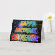 Dieses bunte und lustige Geburtstagskartendesign beinhaltet die Nachricht "HAPPY BIRTHDAY" und den gemeinsamen Vornamen "CATHERINE" mit den Buchstaben, die ein farbenfrohes Regenbogenspektrum wie Farbverlauf haben. Der Hintergrund der Vorderseite zeigt auch ein farbenfrohes Muster, das durch das Aussehen eines berstenden feierlichen Feuerwerks inspiriert wird. Im Inneren befindet sich eine personalisierte Begrüßungsnachricht, oder man könnte sie löschen und leer verlassen werden, wenn eine Nachricht von Hand geschrieben werden soll. Eine Geburtstagskarte wie diese könnte eine lustige Art sein, eine anpassbare Geburtstagsgrüßbotschaft an jemanden namens Catherine zu senden. [~Z0000350]