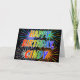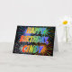 Dieses lustige, lebendige, bunte Geburtstagskarten-Design zeigt die Botschaft "HAPPY BIRTHDAY" und den gemeinsamen Vornamen "CINDY" mit den Buchstaben, die ein buntes Regenbogenspektrum wie Farbmuster haben. Der Hintergrund der Vorderseite ist mit einem farbenfrohen Feuerwerk inspiriert. Im Inneren befindet sich eine individuelle Begrüßungsnachricht, oder man könnte sie löschen und leer verlassen werden, wenn eine Nachricht von Hand geschrieben werden soll. Eine solche Grußkarte könnte eine lustige Art sein, eine personalisierte Geburtstagsbotschaft an jemanden namens Cindy zu senden. [~Z0000350]