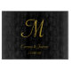 Elegantes Monogram Black and Gold Initial Name Date Cutting Board