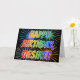 Dieses lebendige, bunte und lustige Geburtstagskarten-Design zeigt die Nachricht "HAPPY BIRTHDAY" und den gemeinsamen Vornamen "DESIREE" mit den Buchstaben mit einem farbenfrohen Regenbogenspektrum wie Farbverlauf. Der Hintergrund der Vorderseite weist auch ein farbenfrohes Muster auf, das durch das Aussehen von berstenden feierlichen Feuerwerken inspiriert wird. Im Inneren befindet sich eine benutzerdefinierte Begrüßungsnachricht, oder Sie können vielleicht gelöscht und leer verlassen werden, wenn eine Nachricht von Hand geschrieben werden soll. Eine solche Grußkarte könnte eine lustige Art sein, eine personalisierte Geburtstagsnachricht an jemanden namens Desiree zu senden. [~Z0000350]