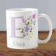 Das Design der Monogram & Name des Babys mit Blume auf beiden Seiten in einem pastellfarbenen Aquarell-Stil. Initial ist der Buchstabe D. Elsa Tasse. Geschenk mit dem Namen Elsa.
