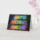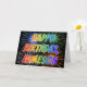 Dieses bunte und lustige Geburtstagskarten-Design beinhaltet die Nachricht "HAPPY BIRTHDAY" und den gemeinsamen Vornamen "JAMESON" mit den Buchstaben, die ein farbenfrohes Regenbogenspektrum wie Farbverlauf haben. Der Hintergrund der Vorderseite zeigt auch ein farbenfrohes Muster, das durch das Aussehen eines berstenden feierlichen Feuerwerks inspiriert wird. Im Inneren befindet sich eine benutzerdefinierte Begrüßungsnachricht, oder Sie können vielleicht gelöscht und leer verlassen werden, wenn eine Nachricht von Hand geschrieben werden soll. Das könnte ein lustiger Weg sein, den Geburtstag von jemandem, der Jameson heißt, anzuerkennen. [~Z0000350]