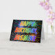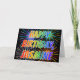 Diese vibrierenden, mehrfarbigen und Spaßgeburtstagsgrußkarten-Ausrüstungsbeschreibungen die Mitteilung "ALLES GUTE ZUM GEBURTSTAG," und der allgemeine Vorname "JASMIN" mit den Buchstaben, die ein buntes Regenbogenspektrum haben, mögen Steigungsfarbtonmuster. Der Hintergrund der Front kennzeichnet auch ein buntes Muster, das durch den Blick der Sprengung der celebratory Feuerwerke inspiriert wird. Die inneren Eigenschaften eine kundenspezifische Grußmitteilung oder konnten möglicherweise geklärt werden und verlassener freier Raum, wenn eine Mitteilung eigenhändig stattdessen geschrieben werden soll. Eine Geburtstagsgrußkarte so wäre möglicherweise eine Spaßweise, den Geburtstag von jemand zu bestätigen genannter Jasmine. [~Z0000350]