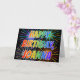 Dieses lebendige, bunte und lustige Geburtstagskarten-Design zeigt die Nachricht "HAPPY BIRTHDAY" und den gemeinsamen Vornamen "JOANNA" mit den Buchstaben mit einem farbenfrohen Regenbogenspektrum wie Farbverlauf. Der Hintergrund der Vorderseite ist mit einem farbenfrohen Feuerwerk inspiriert. Im Inneren befindet sich eine benutzerdefinierte Begrüßungsnachricht, oder Sie können vielleicht gelöscht und leer verlassen werden, wenn eine Nachricht von Hand geschrieben werden soll. Eine solche Grußkarte könnte ein lustiger Weg sein, den Geburtstag von jemandem namens Joanna zu feiern. [~Z0000350]