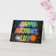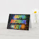 Dieses lebendige, bunte und lustige Geburtstagskarten-Design zeigt die Botschaft "HAPPY BIRTHDAY" und den gemeinsamen Vornamen "LILY" mit den Buchstaben mit einem farbenfrohen Regenbogenspektrum wie Farbverlauf. Der Hintergrund der Vorderseite weist auch ein farbenfrohes Muster auf, das durch das Aussehen von berstenden feierlichen Feuerwerken inspiriert wird. Im Inneren befindet sich eine anpassbare Grußmeldung, oder vielleicht kann gelöscht und links werden, wenn eine Nachricht von Hand geschrieben werden soll. Eine solche Grußkarte könnte eine lustige Art sein, eine personalisierte Geburtstagsnachricht an jemanden namens Lily zu senden. [~Z0000350]
